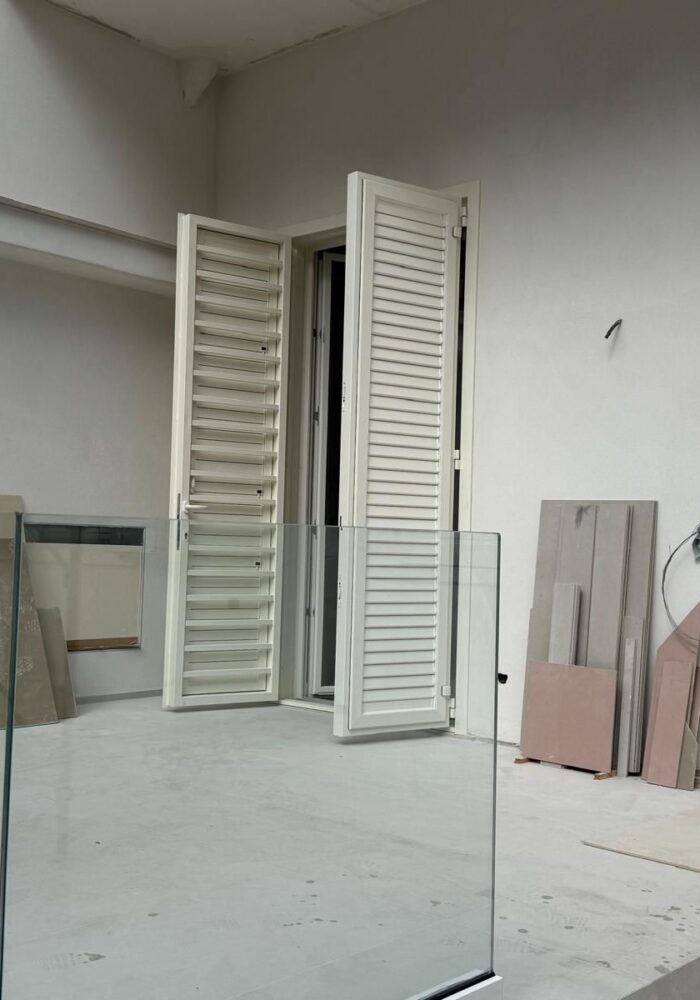Installazione di tapparelle New Solar, balaustre in vetro e facciata angolare con doghe in alluminio a Molfetta (BA)
