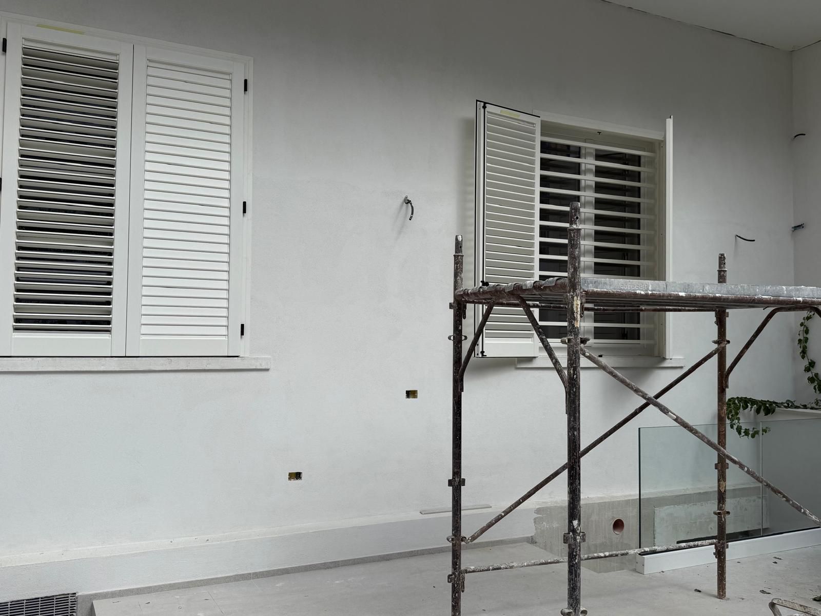 A Bari abbiamo realizzato un intervento completo con infissi in alluminio a taglio termico, persiane blindate, combinati con apertura a vasistas, cancellate in ferro zincato e verniciato e una moderna balaustra in vetro temperato. Soluzioni su misura per garantire sicurezza, isolamento termico e design contemporaneo. Ogni elemento è stato progettato per integrarsi perfettamente con l’estetica dell’edificio, valorizzando funzionalità e stile.