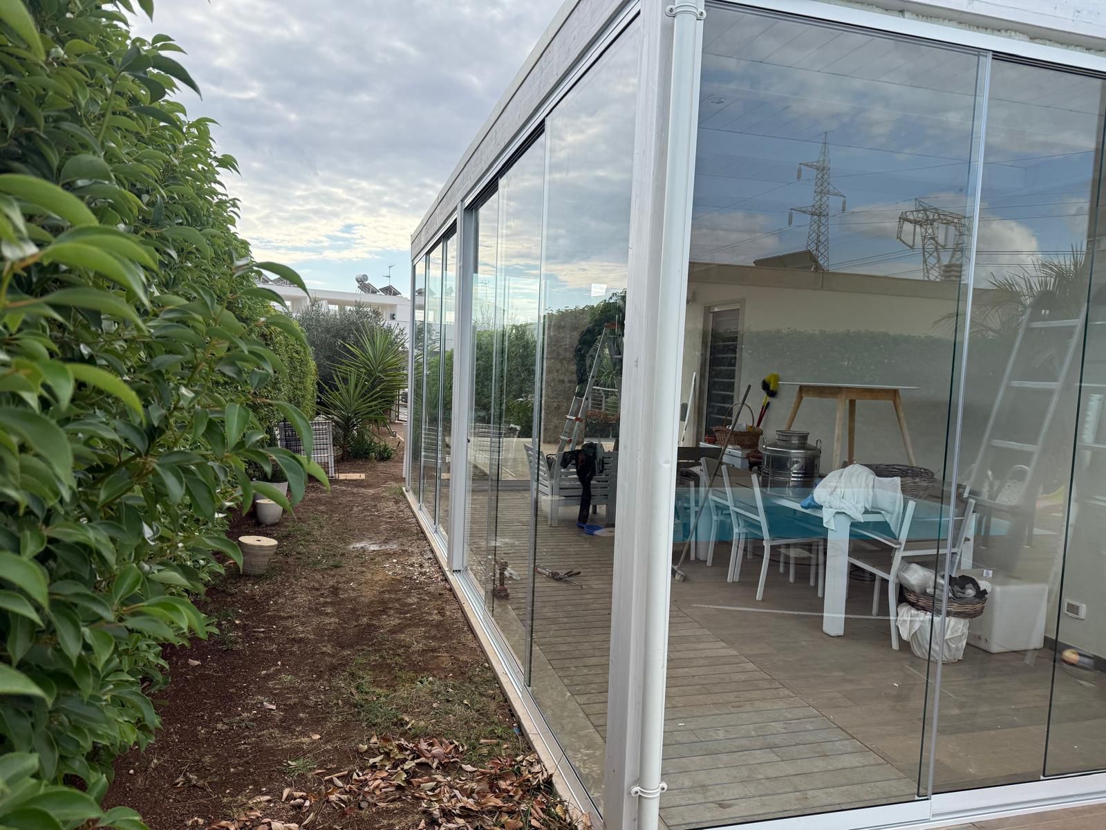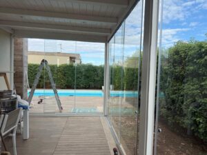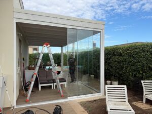 Installazione di eleganti vetrate panoramiche scorrevoli a Cellamare, in provincia di Bari. Una soluzione ideale per chi desidera proteggere terrazzi, verande o porticati senza rinunciare alla luce naturale e alla vista. Le nostre vetrate tutto vetro garantiscono isolamento, comfort e un design moderno, con profili minimali e apertura fluida. Perfette per valorizzare gli spazi esterni in ogni stagione.